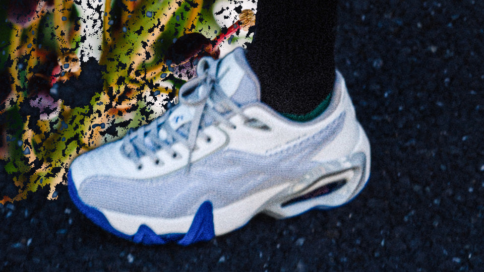 本作は、合成皮革をベースにファインゲージメッシュを採用し、テクノロジーと安定した履き心地を視覚的に表現したデザインが特徴。