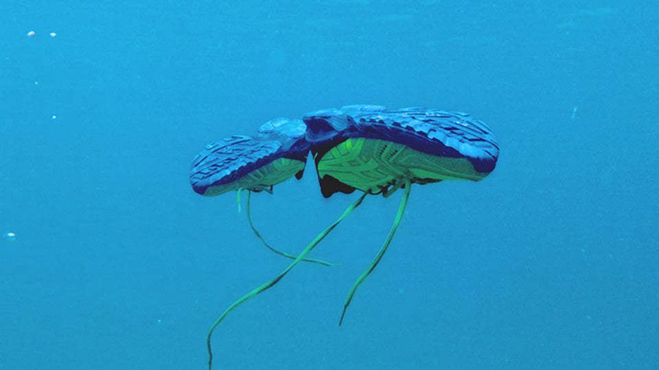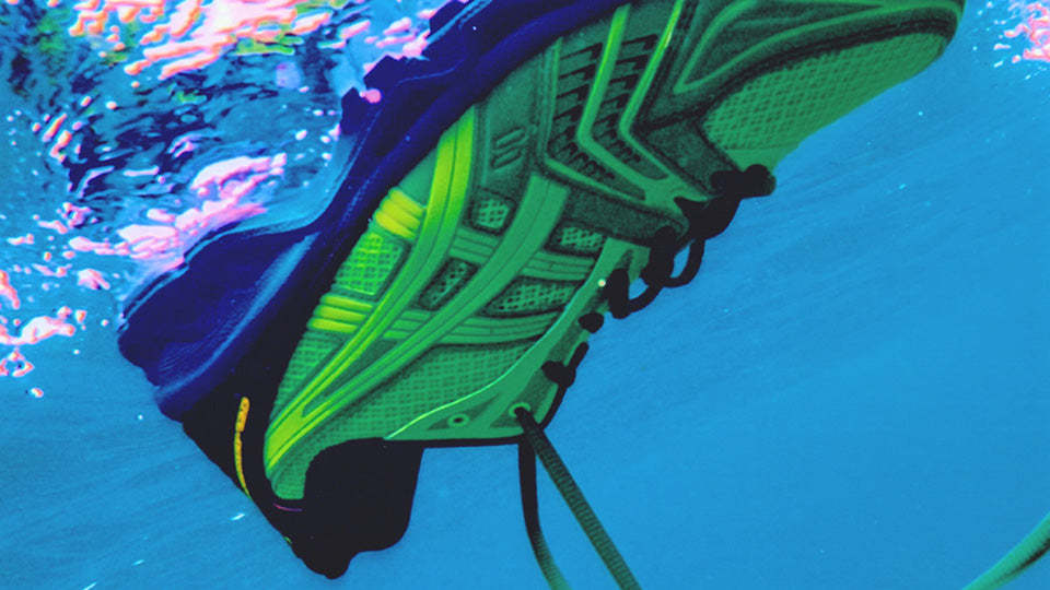 光の波長にインスパイアされたカラーリングや随所にロゴをあしらい、鮮烈なコントラストが際立った個性を生むスペシャルな仕上がりの1足。