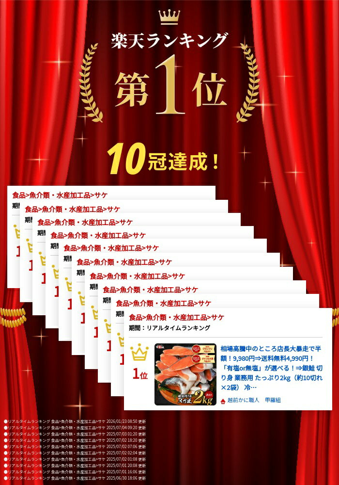 相場高騰中のところ店長大暴走で半額!9,980円⇒送料無料4,990円!「有塩or無塩」が選べる!⇒銀鮭 切り身 業務用 たっぷり2kg(約10切れ×2袋) 冷凍食品