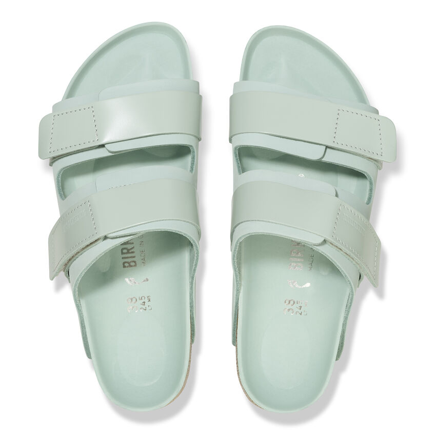 爽やかでスポーティな印象が素敵なBIRKENSTOCKのカジュアルサンダル、Ujiは、バックルでフィット感を調整できる便利さが魅力の一足です。普段着にスポーティなアクセントを添えたいあなたにぴったりのこの一足。光沢のあるクロ―ジャーが素敵なアクセントを添えています。中敷全面を柔らかいピヌマトレザーで覆ったハーフエクスクイジットフットベッドで極上の履き心地をお楽しみください。アッパーにはナチュラルなアピアランスが素敵な高級ソフトヌバックレザーを使用しています。